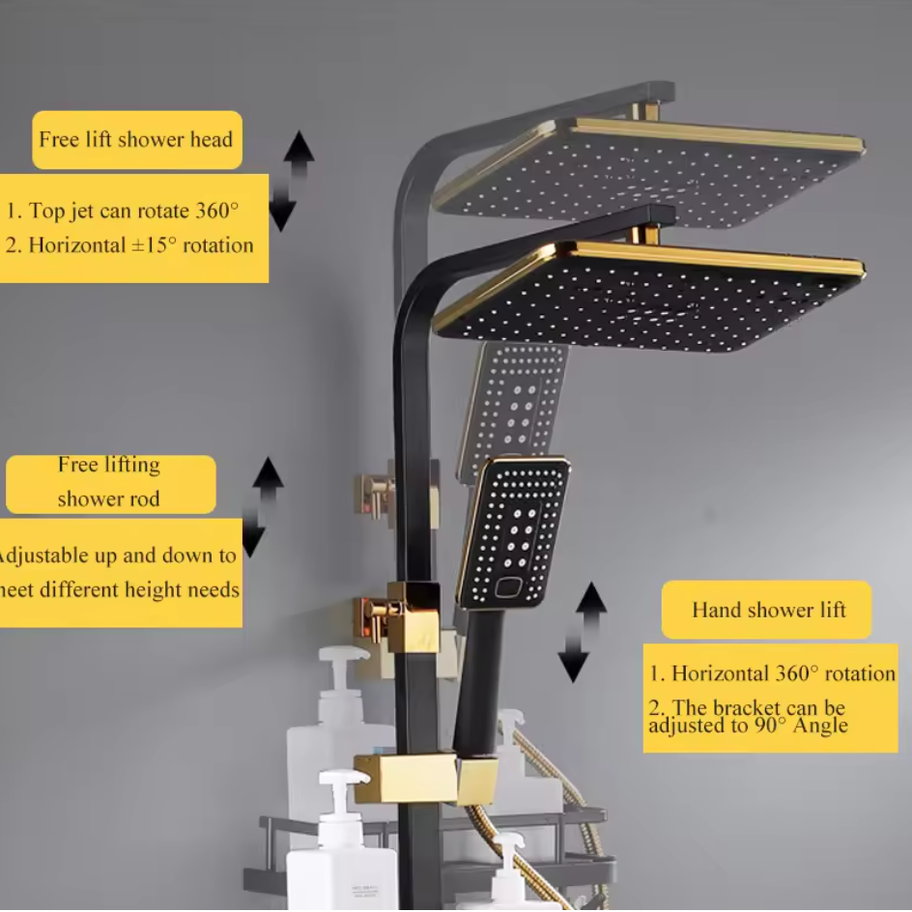Bathroom Shower System Black Gold Mixer Faucet Model DNA-001